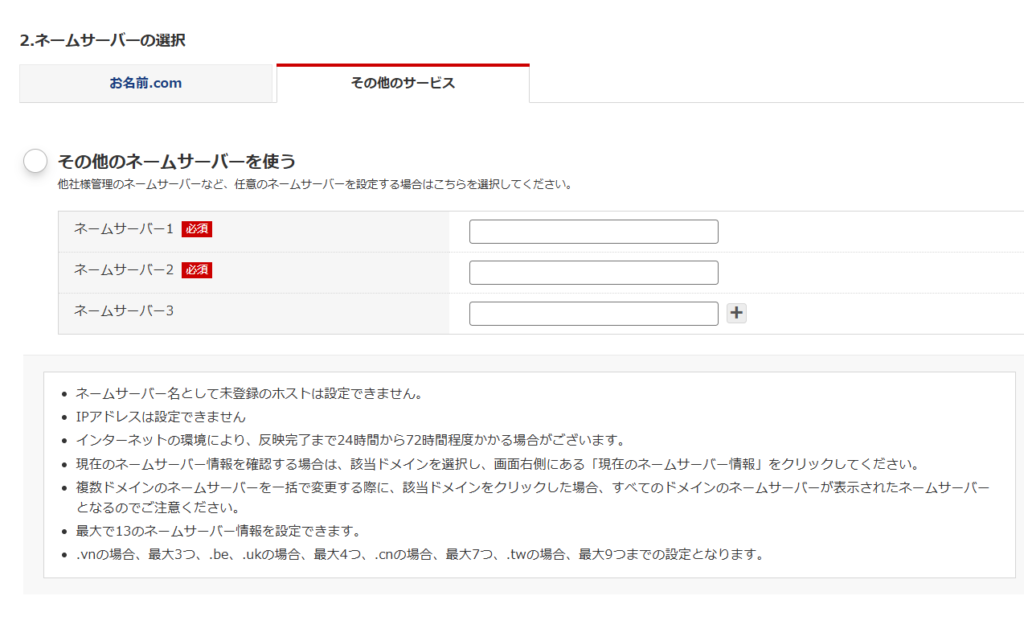 自分の契約しているネームサーバーを書き込む