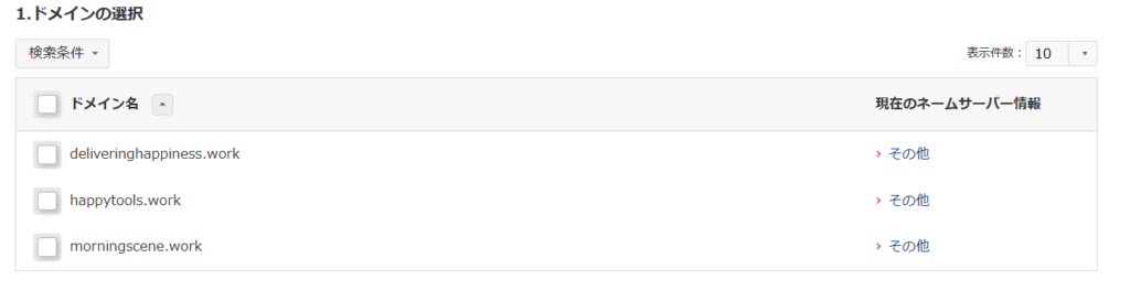 お名前ドットコムの自分のドメインのところまで来る