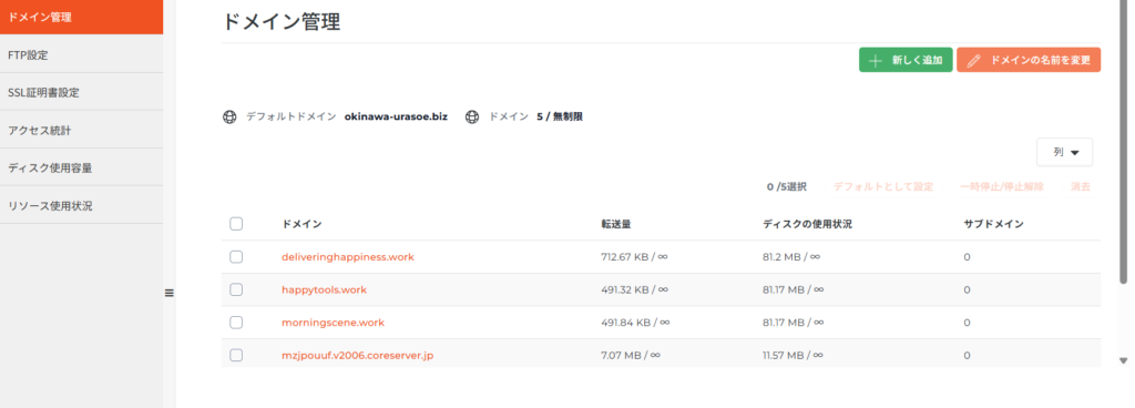 お名前ドットコムのドメインとコアサーバー設定テスト